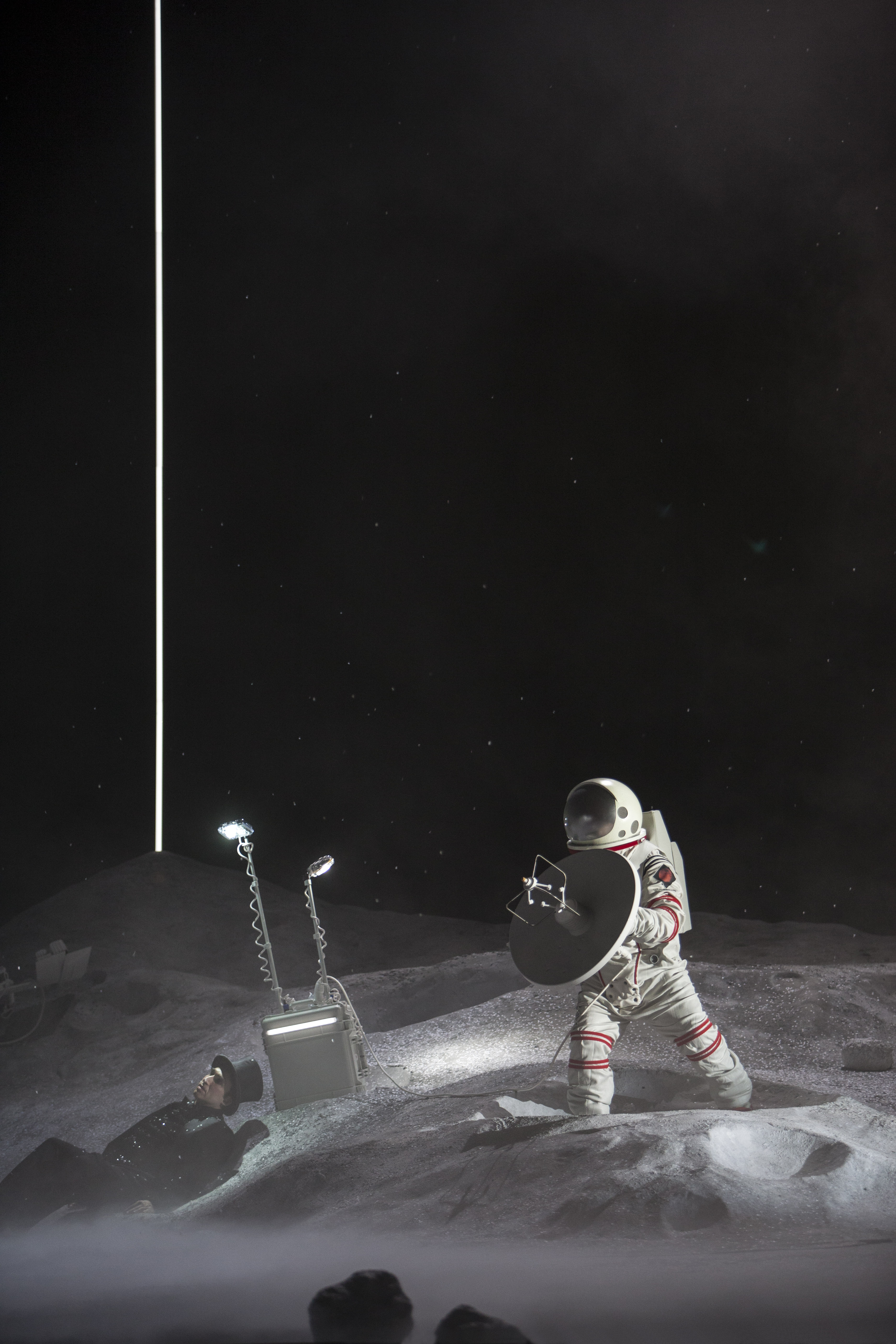 Et si nous prenions le parti d’observer cette œuvre et ce récit à partir d’une distance comparable à celle des personnages âgés du roman? Faisons un pas de plus, imaginons la distance la plus grande possible : beaucoup de temps a passé, la jeunesse est finie, elle n’existe plus. Les lieux aussi ont disparu, tout comme les gens qui autrefois furent au centre de la vie. Mimi elle-même est morte, seul le souvenir d’elle est encore présent pour Rodolfo. Mais l’on s’accroche au souvenir comme à un fil qui nous rattache à la vie. Écouter La Bohème dans cette perspective fait surgir des images nouvelles, différentes, nous entraînant dans l’infinité de l’univers. C’est alors que commence le voyage des quatre amis, Rodolfo, Marcello, Schaunard et Colline, hors du temps et de l’espace, engagés dans une mission en perdition.